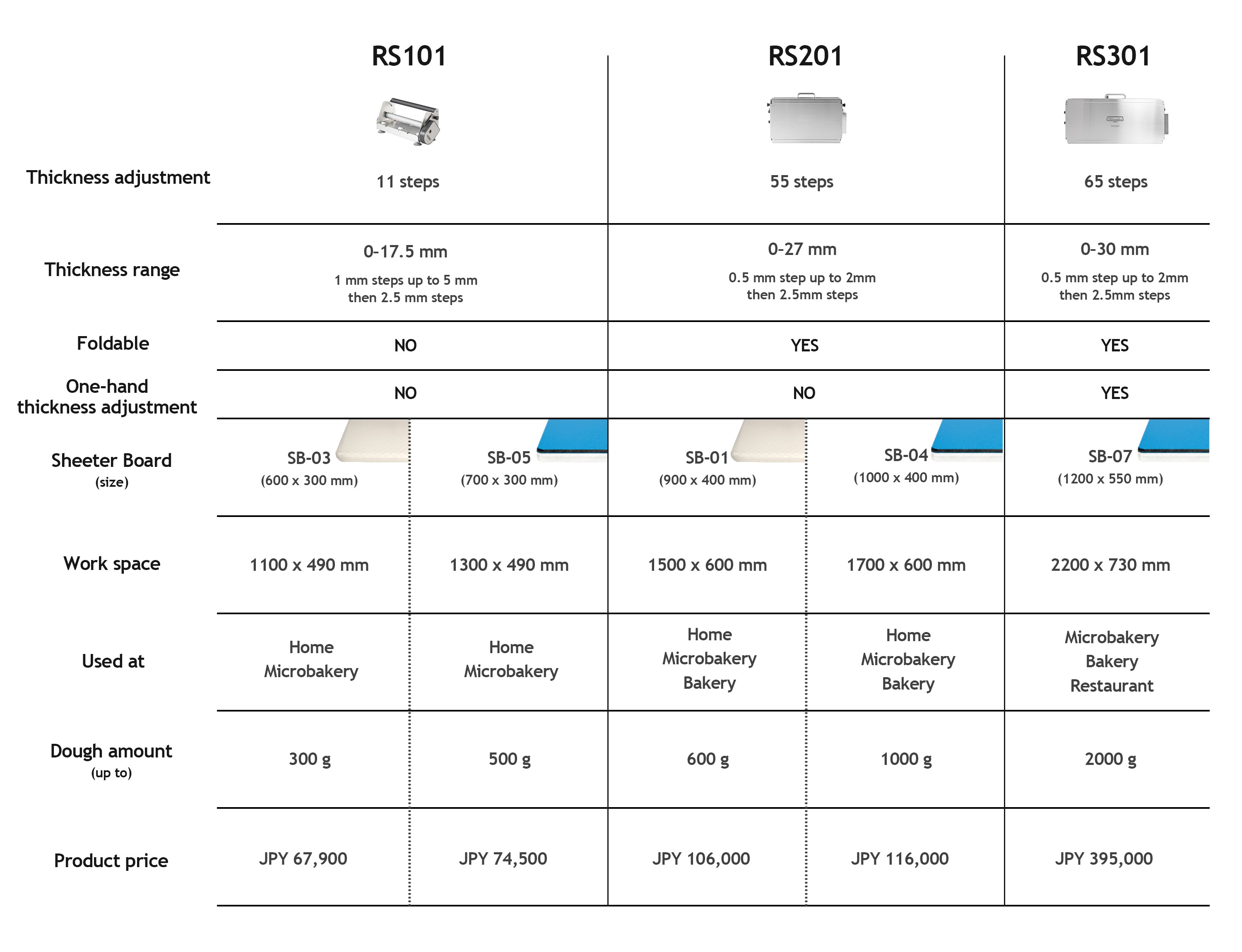 Folding Dough Sheeter RS201, while also suitable for home bakers, is ideal for those who need to handle larger batches. Whether in a home kitchen, café, bakery, or restaurant, it provides even more precise thickness adjustments, giving you greater control over your dough.